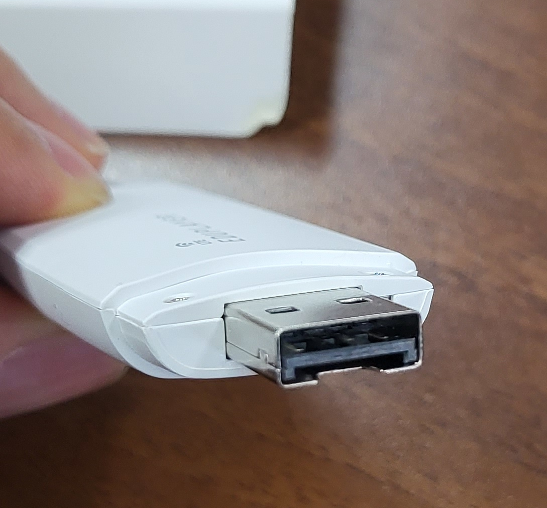 여튼 유심, 라우터 모두 준비가 되셨으면 라우터의 USB 단자쪽에 작은 구멍이 있는데 이곳이 나노 유심이 들어갈 자리입니다. 유심을 끼운 후 USB 연결을 해줍니다.