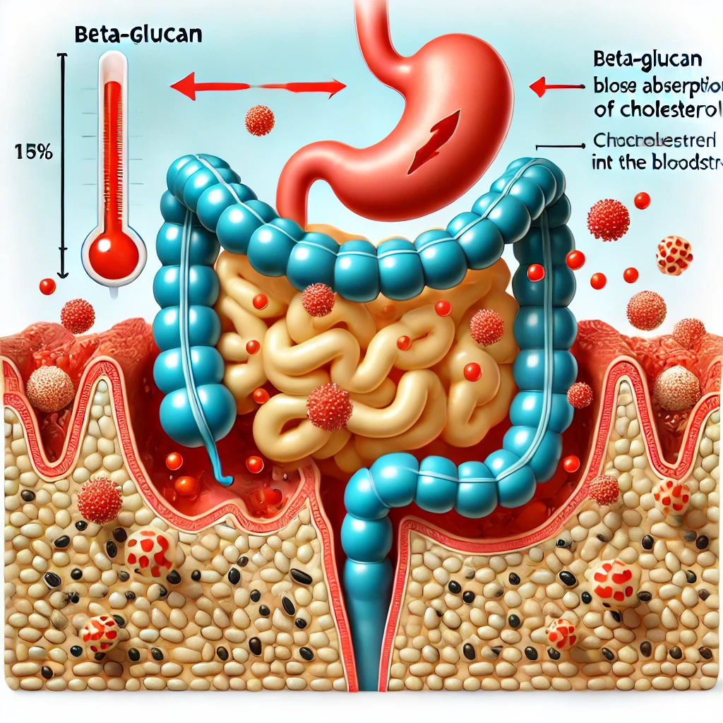 베타글루칸은 혈중 콜레스테롤 수치를 낮추는 데 도움을 줍니다. 특히, 귀리나 보리에서 얻을 수 있는 베타글루칸은 콜레스테롤의 흡수를 감소시켜, 심혈관 질환 예방에 중요한 역할을 합니다. 이는 베타글루칸이 소장에서 콜레스테롤과 결합해 흡수를 방해하기 때문입니다.