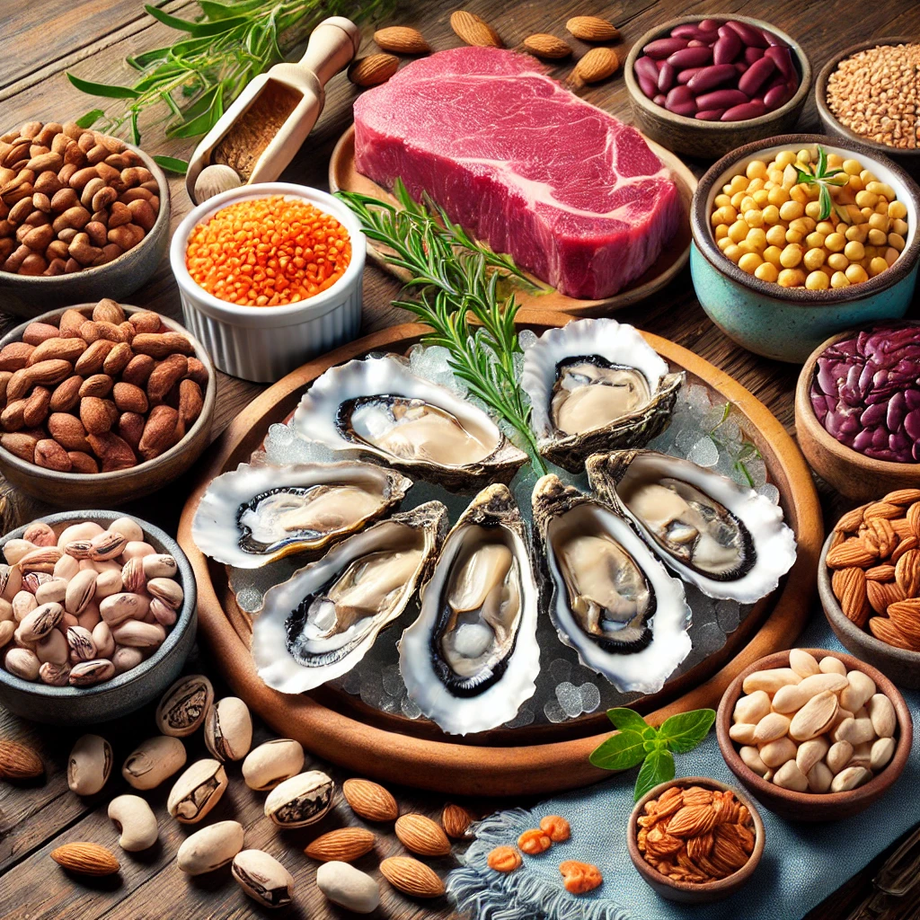 아연은 다양한 음식에서 자연스럽게 섭취할 수 있습니다. 아연이 풍부한 대표적인 음식들은 다음과 같습니다: