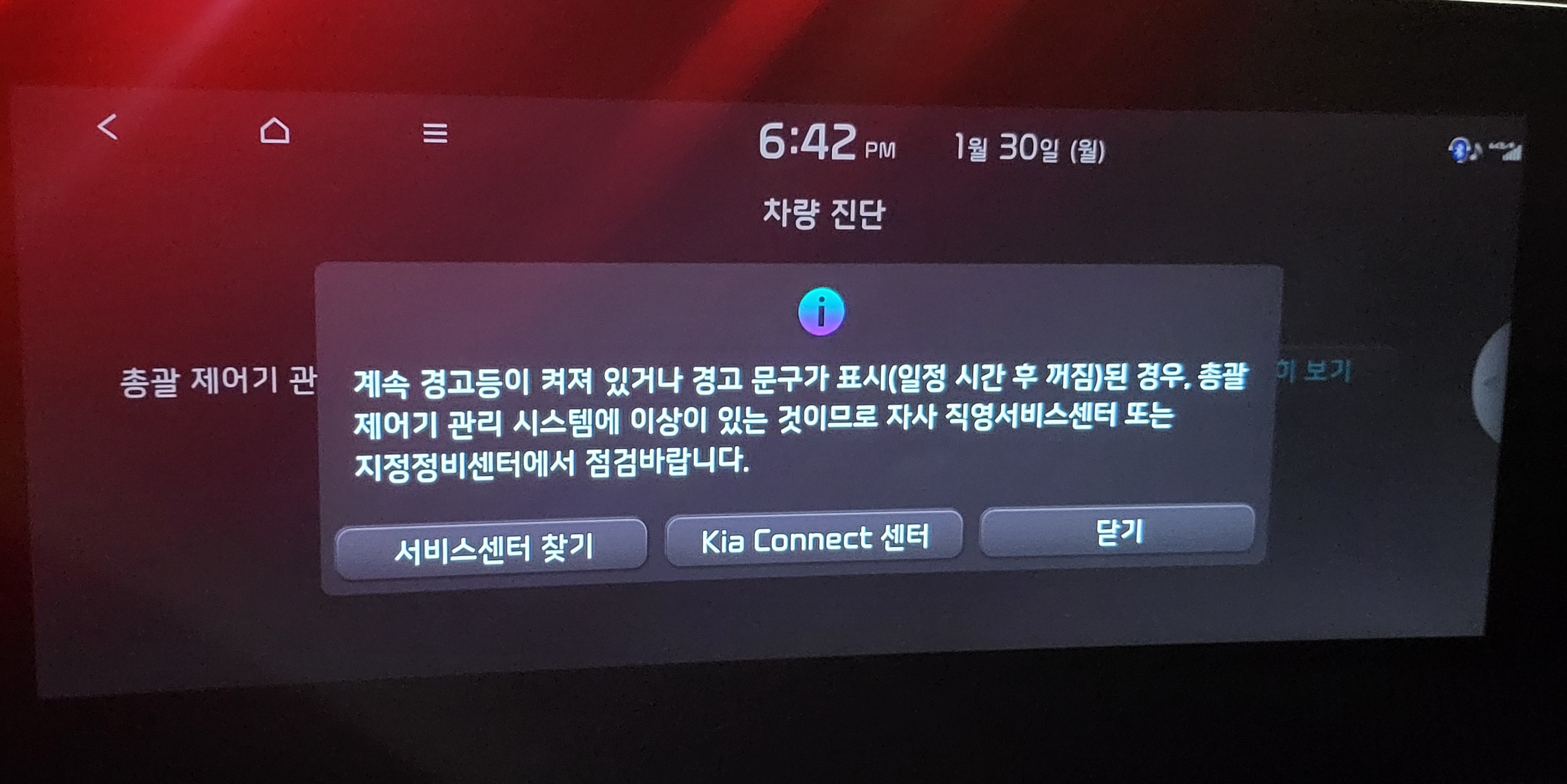 2. 갑자기 "총괄 제어기 관리 시스템" 경고등이 뜬다