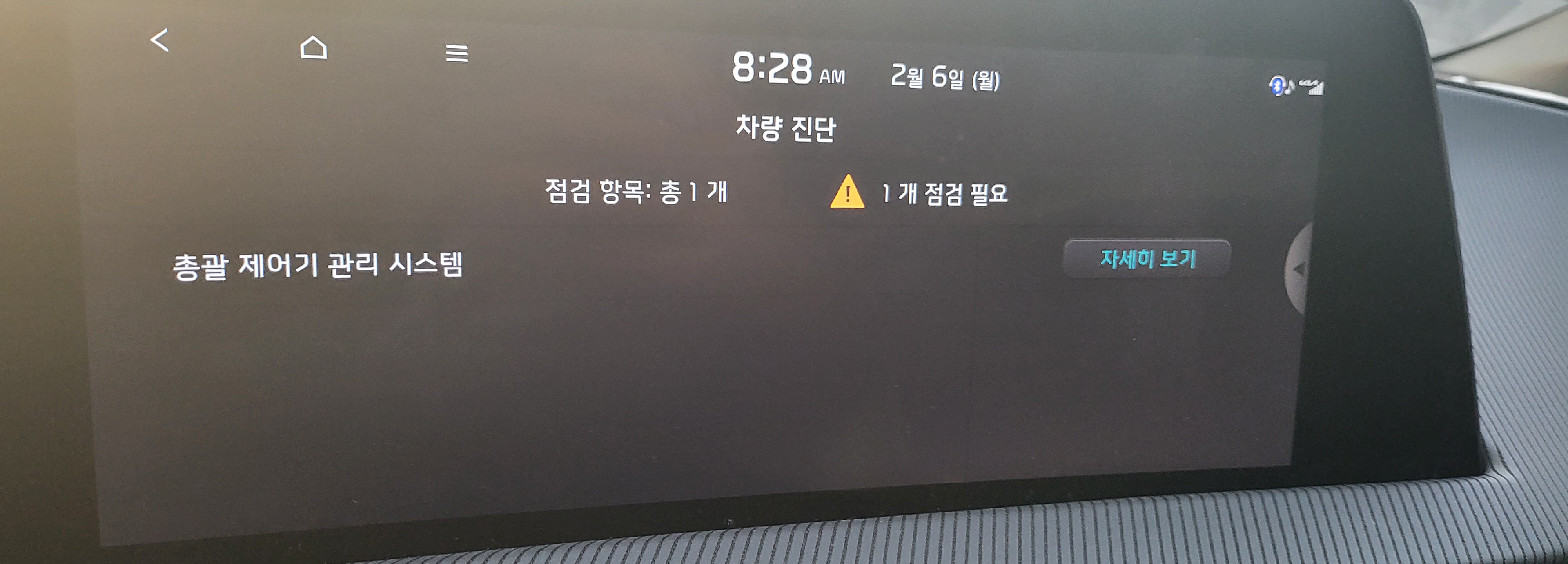 그로부터 일주일쯤 후인 2월 6일, 이번엔 출근길에 똑같은 "총괄 제어기 관리 시스템" 경고등이 뜹니다.