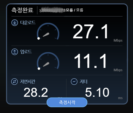 인터넷 서핑 결과는 아주 만족스럽습니다. 인터넷 속도 측정 결과도 나쁘지 않네요.